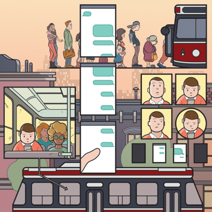 This then had me going through my collection of books looking for something that simpler era, and here I opened up my copy of Jimmy Corrigan: The Smartest Kid on Earth which had undeservedly been relegated to the bottom shelf. And the result of this trip through some of my earliest influences is an homage to comics, Chris Ware, and idle times commuting on public transportation.